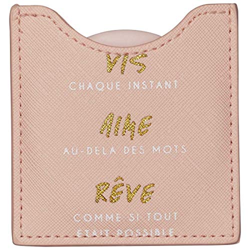 Draeger Paris | Life is Beautiful fickspegel med rosa fodral | fyrkantig spegel makeup att ta med överallt | perfekt hem och resor | 9 x 7 cm | personlig gåva gott humör alla tillfällen