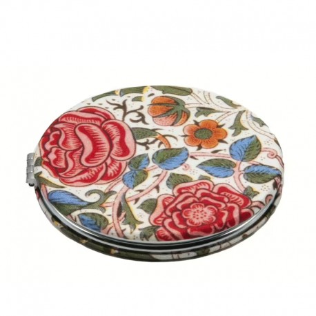 Rund tygklädd fickspegel, william morris. rosor