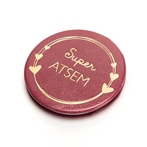 DRAEGER PARIS 1886 | Kräm kärlek fickspegel | 8 x 8,5 cm rund spegel med reptåligt fodral | idealisk hem- och resemakeup | personligt meddelande | original födelsedagspresent, jul, förälskad gåva