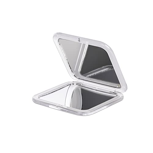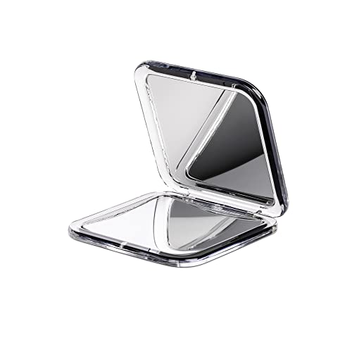 MIRRORVANA Liten kompakt spegel för resor – 10 x /1 x förstoring, handhållen, hopfällbar fickspegel för kvinnor – 8,4 cm x 8,3 cm (fyrkantig)