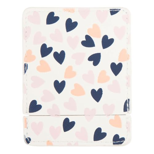 Draeger Paris | Fickspegel med fodral små hjärtan rosa och blå | fyrkantig sminkspegel att ta med överallt | Perfekt hem och resor | 9 x 7 cm | personlig gåva vän, födelsedag, fest