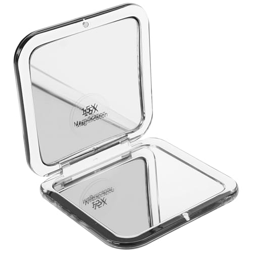 Fantasia fickspegel fyrkantig – plast vit, dubbelsidig, normal och 7 x förstoring, 8,5 x 8,5 cm, praktisk fällspegel