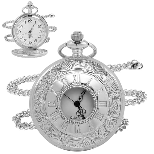 Vicloon vintage fickur, retro kvarts fickur, fickur med kedja, retro fickur män med kedja, fickur för män, kvinnor, far, morfar, födelsedag, årsdag, Silver + Presentförpackning