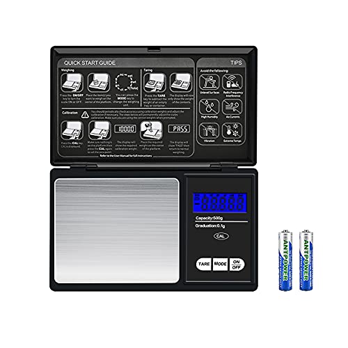 Aurora & Tithonus Precisionsvåg för kök, 500 g/0,01 g, elektronisk köksvåg, fickvåg med LCD-skärm, minidigital våg, med tarafunktion för smycken, te, kaffe