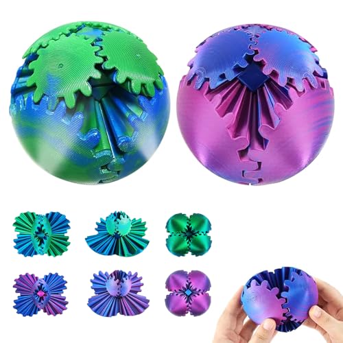 Gear Ball kugghjulsboll 2 stycken 3D-tryckt Gear Ball Cube Fidget Toy Fidget leksak sensorisk leksak steampunk Whirling Wonder Fidget pussel Gear stressboll för vuxna och barn gåva