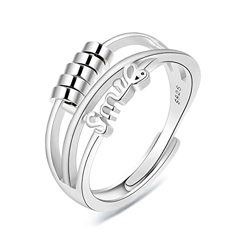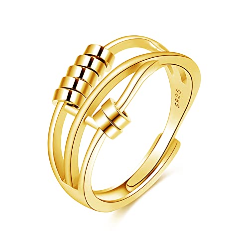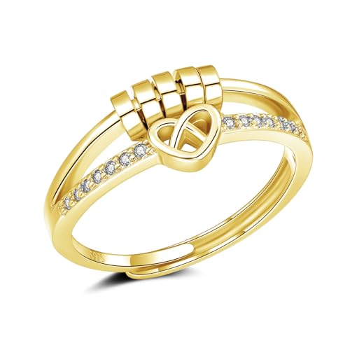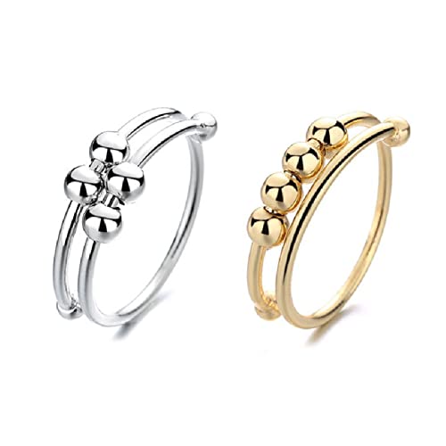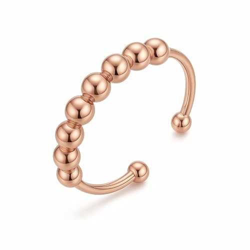 LAOYEFACAI Stressavlastningsring för kvinnor 925 silver och justerbart armband till min dotter justerbar svängbar ring med ångestpärlor ångestlindring för kvinnor och flickor fidget ring, koppar,