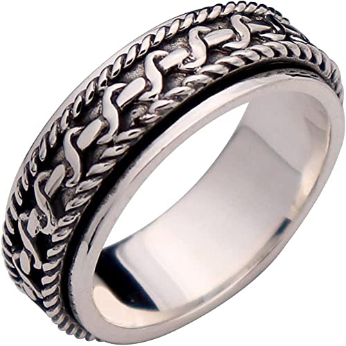 tåring Vintage 925 Sterling Silver Twisted Rope Spinner Ring Band Fidget Anxiety Relief Ring for män kvinnor(U)