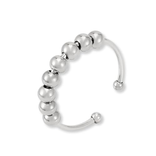 LAOYEFACAI Ångest Spinning Fidget Ring With Pärlor Band - Anti-Stress Stackable Silver Ring for Kvinnor and Män