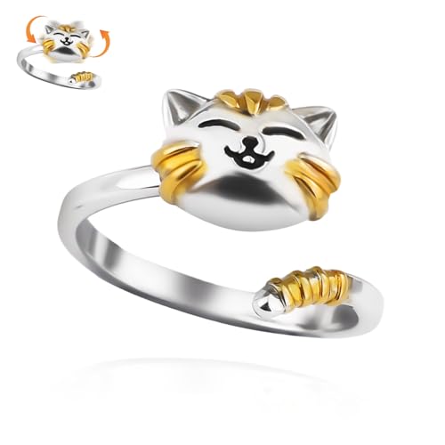 Fidget Ring Kvinnor, Pläterat Silver Roterbara Ringar Djur Söt Kattring Öppen Justerbar Fidget Smycken för Avkoppling