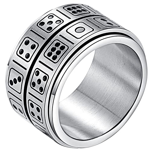JewelryWe herr 14 mm bred spinnring band roterbar kreativ dubbelskikt tärning mönster fidget ångestlindrande ring, Rostfritt stål