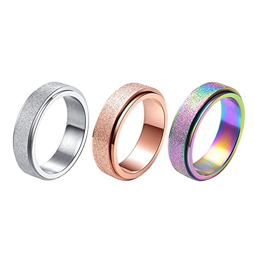 SOIMISS 3St Rostfritt Stål Spinnerring Färgglada Rose Guld Silver Fidget Band Ring Stress Lätta Sand Blast Finish Ringar För Ångest Komfort 1. 6CM.