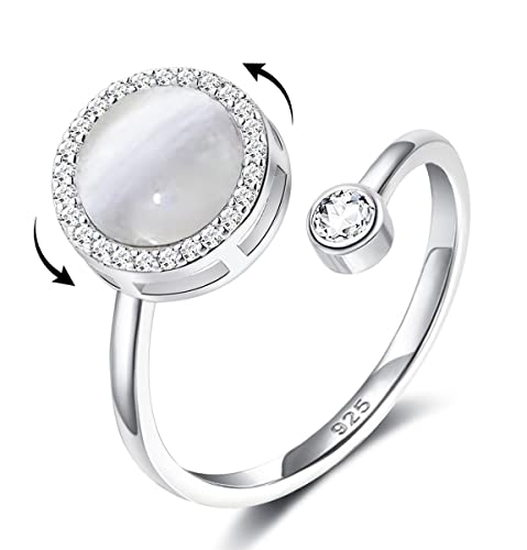 Deyanse Ångestring av silver 925, för kvinnor, öppen, justerbar, anti-stressring, dekompressionsring med zirkon, oändlig fidget spinner-ring, stressring, stämningsring mot ångest och stress,