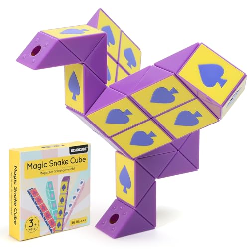 ECHOCUBE Magic Snake Cube med pokertema, 36 Block Magiska Ormar Pussel Kub, Twist Puzzle Toys för Barn och Vuxna, Educational Snake Fidget Toys Magic Snake Puzzle för Party Favours Gifts (Lila)