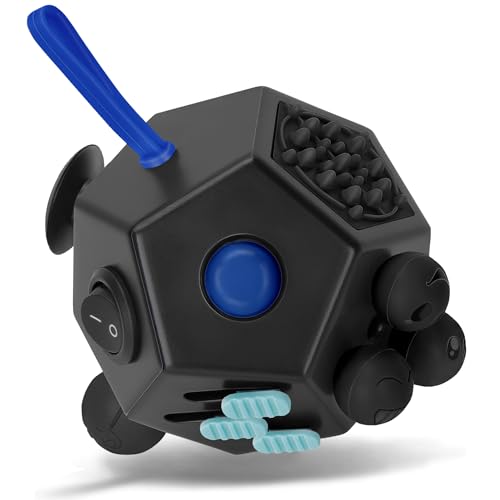 Milifox Fidget Kub Med 12 Sidor - Fidget Cube Leksak för Vuxna Och Barn Med Adhd,Add,Autism,Anti-Stress åNgestlindring Original Infinity Toys,Svart Blå