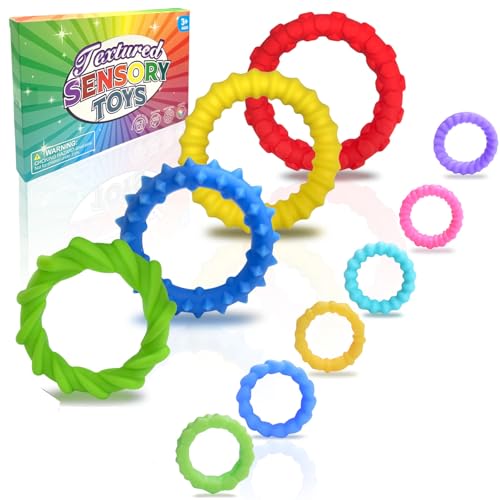 Sensory Fidget Toys, 10 St Sensoriska Handledsband & fingerringar Leksaker Tuggarmband Barn ADHD, Sensory Fidget Toys for Autism, Anti Stress, Sensoriska for Kids Lugna ner digCalm Down