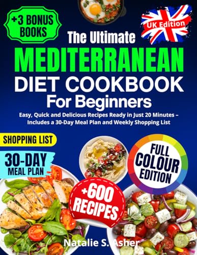 The Ultimate Mediterranean Diet Cookbook for Beginners [UK Edition]: Easy, Quick and Delicious Recipes Ready in Just 20 Minutes – Includes a 30-Day Meal Plan and Weekly Shopping List