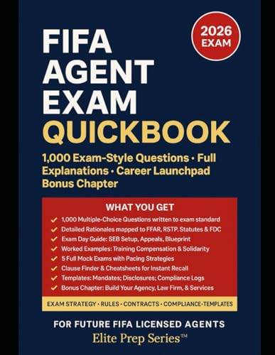 FIFA Agent Exam QuickBook (2025–2026): Updated for 2025/26: 1,000 Exam-Grade Questions, Answers & Explanations • FFAR & RSTP Micro-Lessons • Bonus Chapter