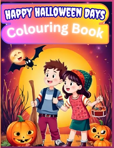 Happy Halloween Days Colouring Book: Delightful Collection of Not-Too-Scary kid friendly Halloween Scenes! A Spooktacular way to learn coloring and play