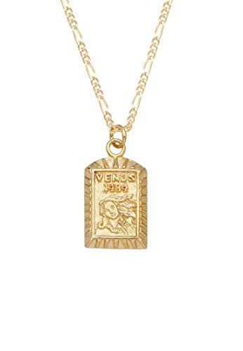 Elli halsband silver 925 förgyllt 24K Venus hänge Figaro kedja damer smycken gåvor för kvinnor flickor mamma flickvän, vintage silverkedja längd 45 cm, 45, Sterlingsilver