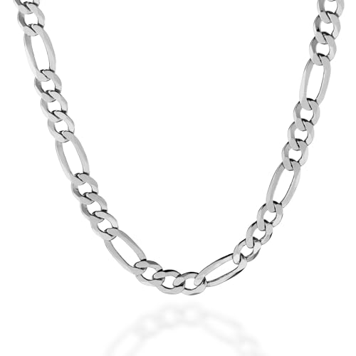 Quadri - Elegant 925 silverhalsband med fasetterad Figaro-kedja för män/kvinnor, länkbredd 7 mm - längd | 46 | 51 | 56 | 61 | 66 cm - certifierad tillverkad i Italien, Silver, Ingen ädelsten