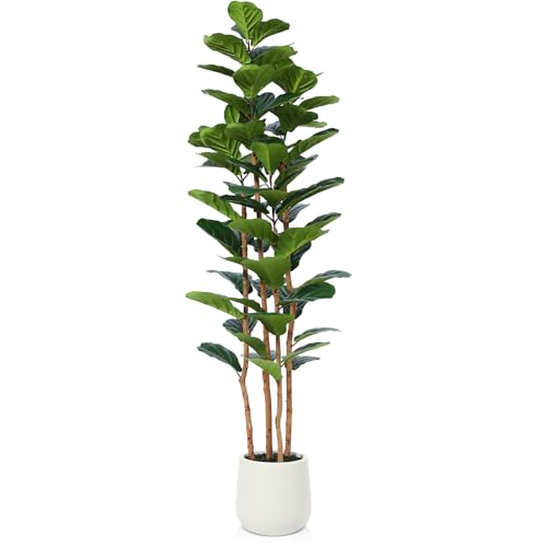 VEVOR Konstgjort fikonträd med fiolblad 6 FT, säkert PE-material och tippskydd med lågt underhåll Faux Plant, verklighetstroget grönt falskt krukväxt för hemmakontor lagerinredning inomhus utomhus