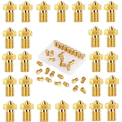 beihuazi® V6 munstycke 26 st. M6 munstycke 0,2 mm 0,3 mm 0,4 mm 0,5 mm 0,6 mm 0,8 mm 1,0 mm för 1,75 mm filament 3D-skrivare t.ex. Anycubic i3 Mega Chiron Prusa i3 MK3/MK3S Anet A8 CTC Printer