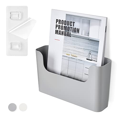 YOHOM Grå filhållare självhäftande dörrmontering brevtidningsarrangör, kontorsväggmontering, enkel ficka