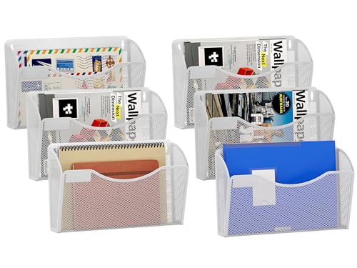 EasyPAG 6 landskap ficka A4 nät väggorganiserare, hängande väggmonterad filhållare, postorganiserare, tidskriftsförvaring med etikettpanel, paket med 6, vit