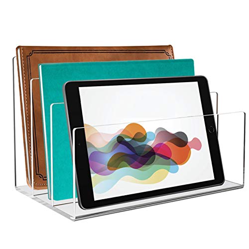 Tasybox Filhållare av akryl, klar filsorterare, filorganiserare för skrivbordet, skrivbordsställ med 3 sektioner för kontoret 23 cm x 16,5 cm x 16,5 cm