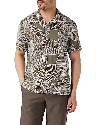 United Colors of Benetton Herr 5t17uq00k skjorta, militärgrön med mönster 76 g, X-Small, Militärgrön med mönster 76 G, XS