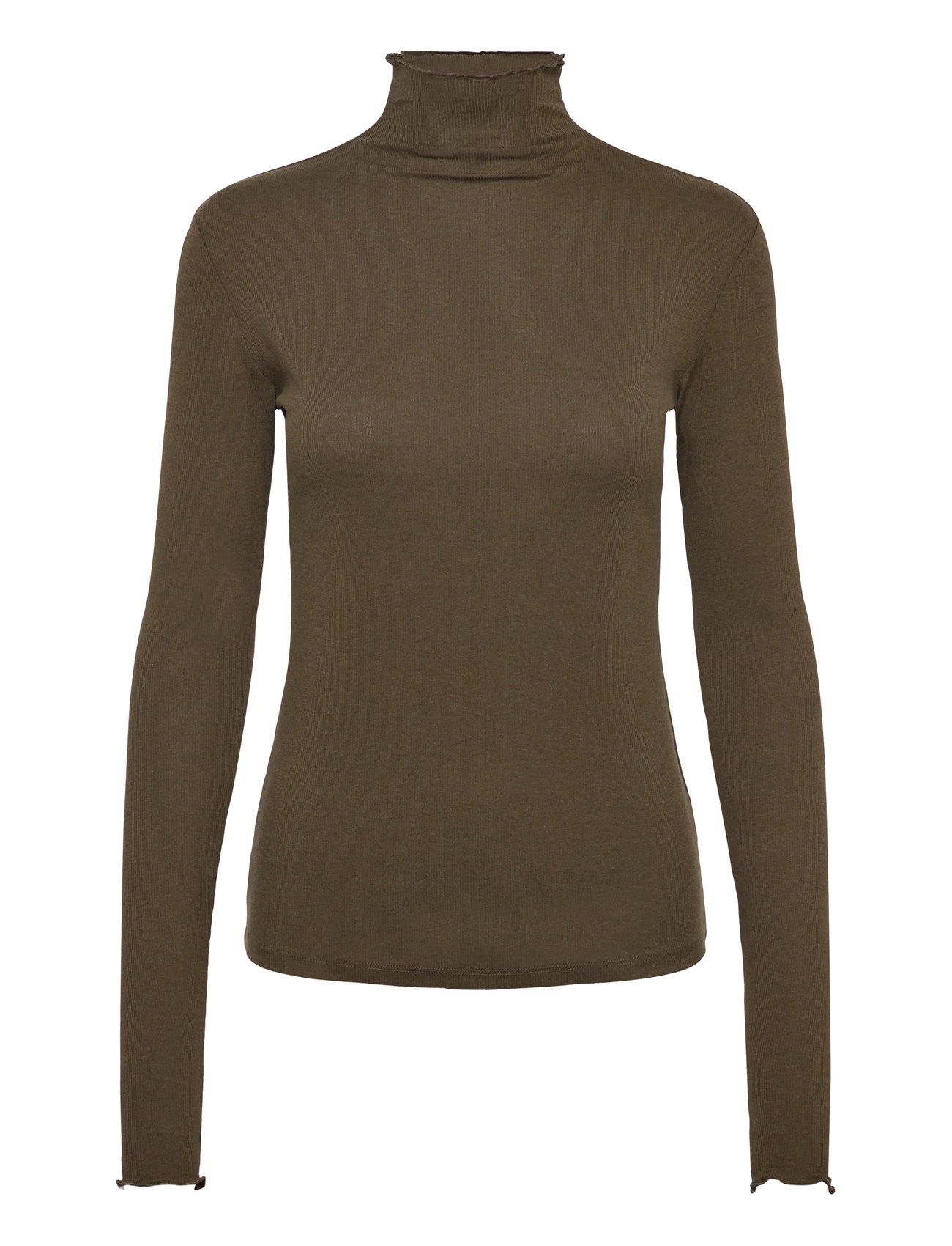 Filippa K Rib Mock Neck Top - Khaki green - S