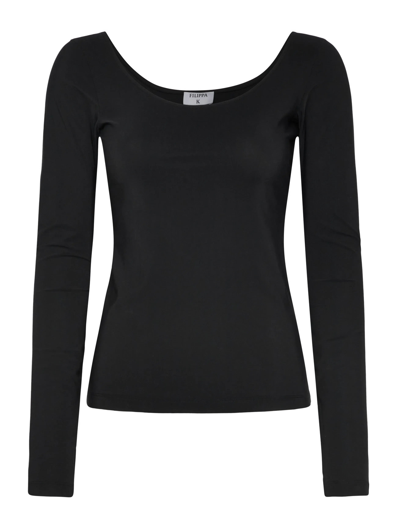 Filippa K Cotton Stretch Scoop Neck Top - Black - XS