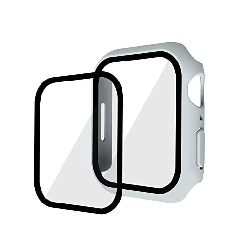 Kompatibel med iwatch7 klockfodral, iwatch7 skyddsfodral, PC+ härdat filmfodral och film, 45 mm skyddande fodral – ljusgrå