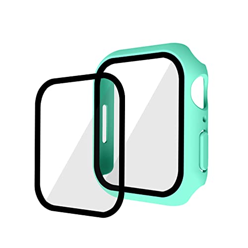 Kompatibel med iwatch7 klockfodral, iwatch7 skyddsfodral, PC + härdat filmfodral och film, 45 mm skyddande fodral – mintgrön