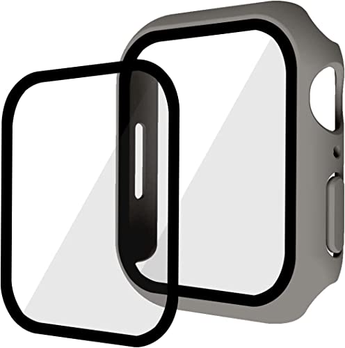 Kompatibel med iwatch7 klockfodral, iwatch7 skyddsfodral, PC+ härdat filmfodral och film, 45 mm skyddande fodral – mörkgrå