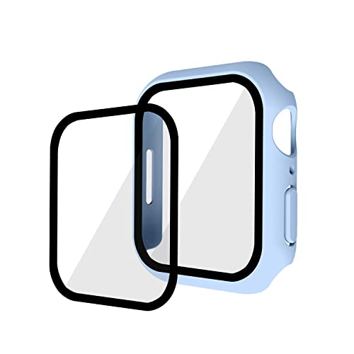 Kompatibel med iwatch7 klockfodral, iwatch7 skyddsfodral, PC+ härdat filmfodral och film, 45 mm skyddande fodral – himmelsblå