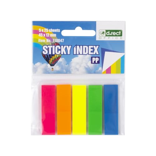 D.RECT 125 stycken självhäftande remsor sidomarkörer index självhäftande markörer film textremsor PP-film 12 x 45 mm 5 x 25 stycken