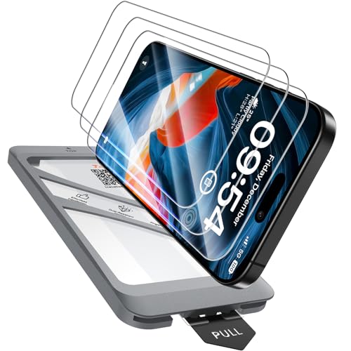 ONES iPhone 15 Skärmskydd 9H Ultraglass [Militärklass] Sprosssäkert härdat glas film fulltäckande för iPhone 15 med Auto Alignment Kit, 1-Pack