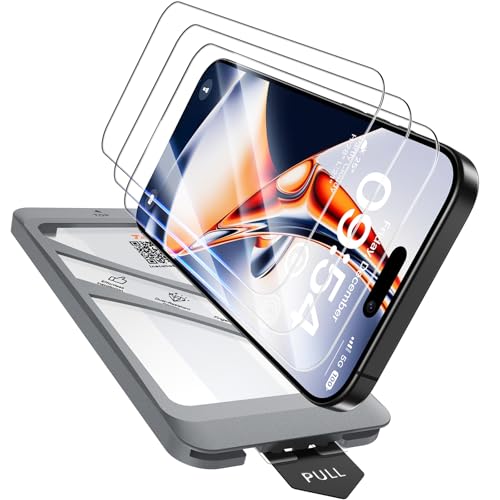 ONES iPhone 15 Pro Skärmskydd 9H Ultraglass [Militärklass] Sprosssäkert härdat glas film fulltäckande för iPhone 15 Pro med Auto Alignment Kit, 1-Pack