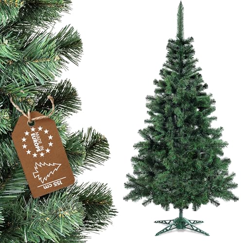 KADAX Konstgjord julgran, av PVC-film, naturtrogen julgran, 155–220 cm, konstgjord gran med robust plaststativ, hållbara konstgranar (tomtenisse, 155 cm, v2)