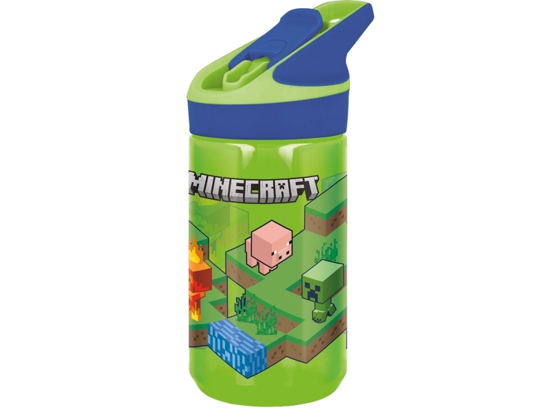 Minecraft Tritan Premium Flaska 480 Ml Vattenflaska Tillverkad Av Tritan Och Dekorerad Med Mönster Baserade På De Mest Populära Film-, Tv- Och Seriefigurerna. Tack Vare Den Automatiska Tryckknappen Med Integrerad Pip Kan Du Använda Den Om Och Om Ige