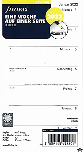 Filofax Personal 1 vecka på 1 sida (tyska) 2022 22-68444