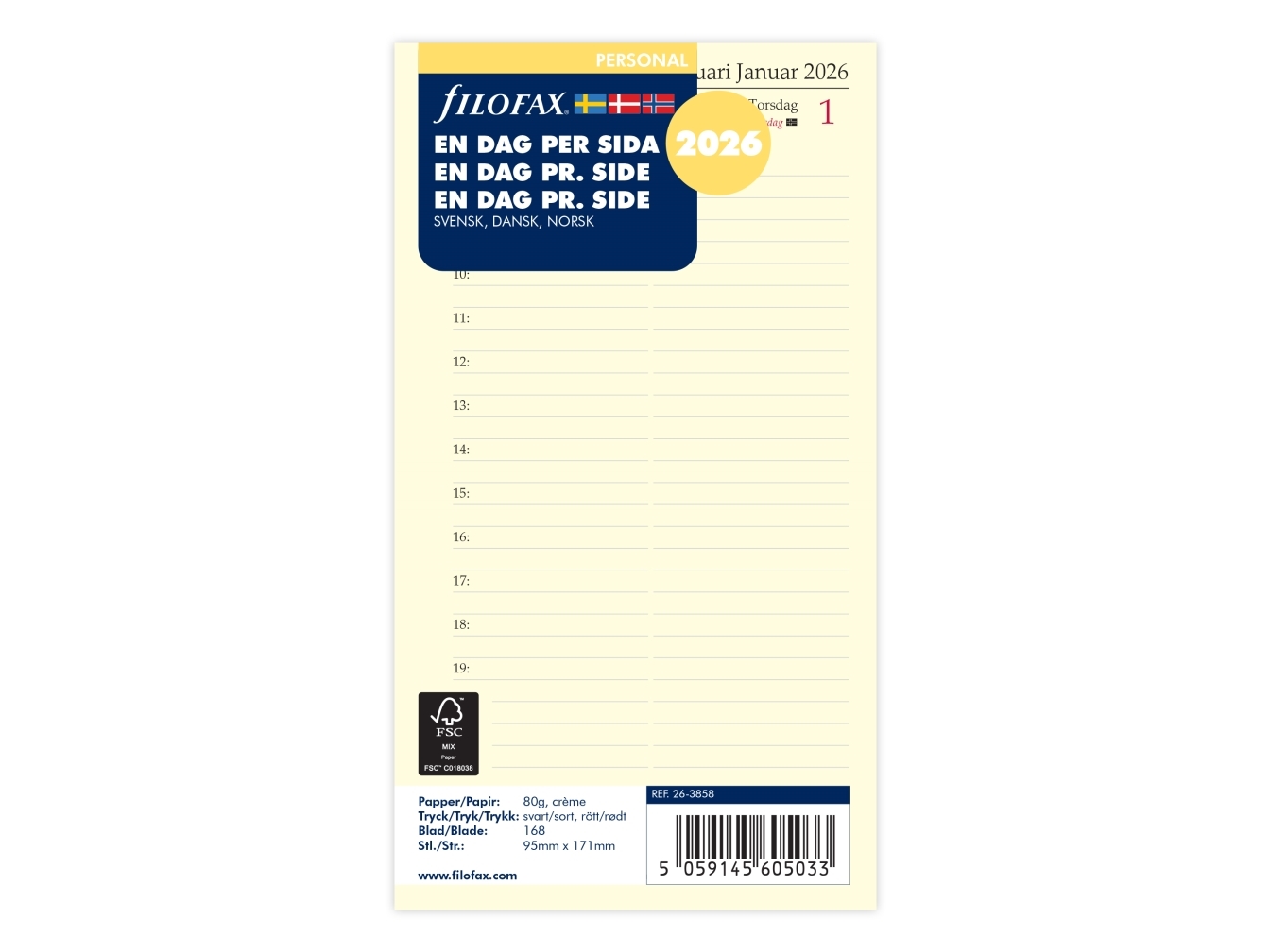 Refill Personal 2026 Dag Per Siden Svensk/Dansk/Norsk