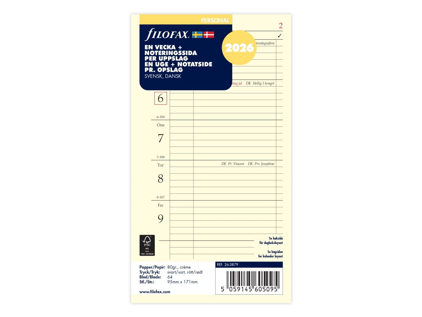 Refill Personal 2026 Uge Per Siden Svensk/Dansk/Norsk