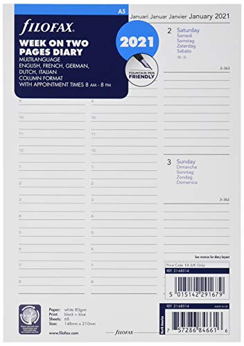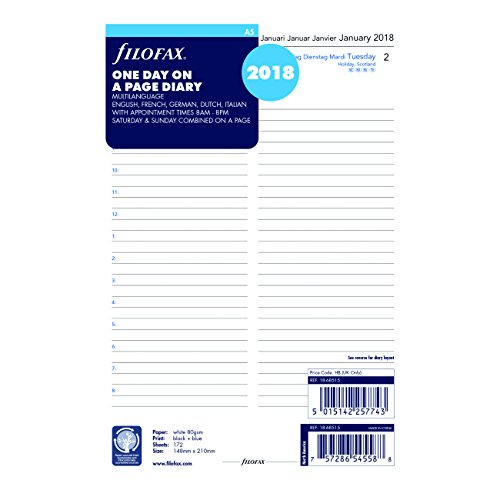 Filofax 2018 A5 dag per sida påfyllning, 5 språk, 8,2 x 5,7 tum (C68515-18)