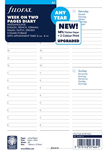 Filofax A5 vecka på två sidor engelsk mellanårsdagbok 21 augusti - 22 juli