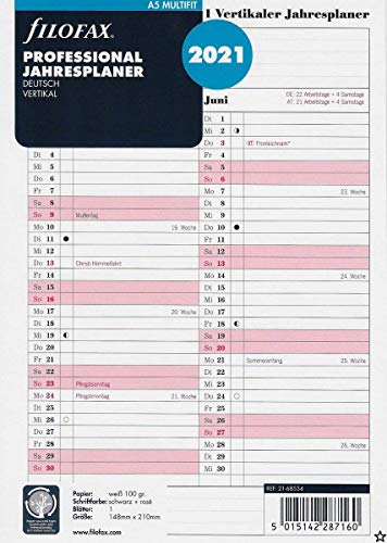Filofax Kalenderinlägg A5 Professional Årsplan (tyska) 2021