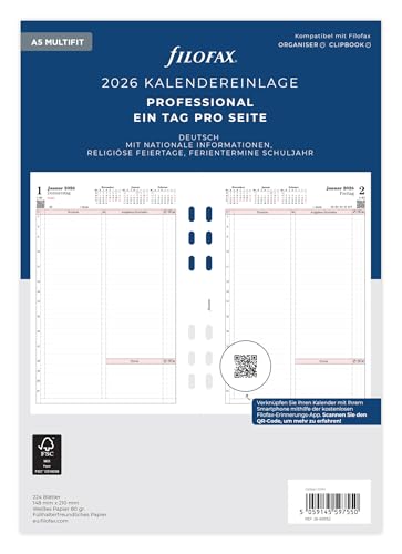 Filofax Kalender A5 Prof.1 dag per sida (tyska) 2026