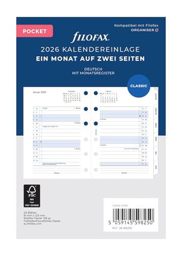 Filofax Kalender Pocket 1Mo/2S tabbed (tyska) 2026