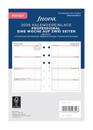 Filofax Kalender Pocket Prof.1 vecka på 2 sidor (tyska) 2026